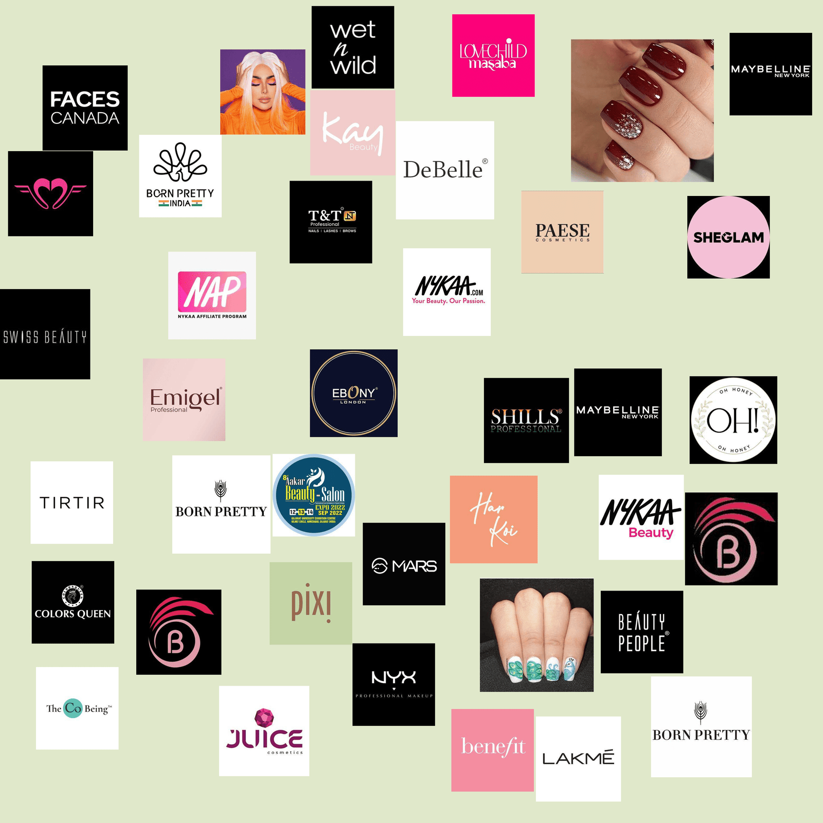 These influencers frequently tag and collaborate with a mix of popular and niche beauty brands such as Nykaa, Lakmé, Swiss Beauty, Faces Canada, and Sheglam. Many also promote nail-focused brands and workshops, including Born Pretty, Beromt, and Sylvia Salon & Academy, highlighting their involvement in both product features and educational initiatives.